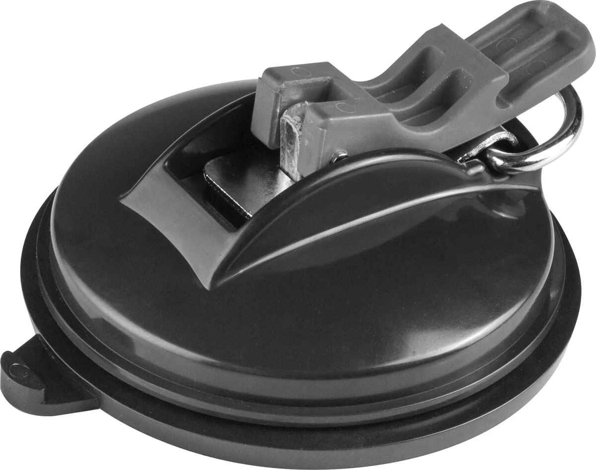 Saugnapf-Set mit D-Ring zur schraubenlosen Befestigung von Sonnendächern, Busvorzelten, Planen und uvm. auf glatten Oberflächen. Bis zu max. 12 kg belastbar.