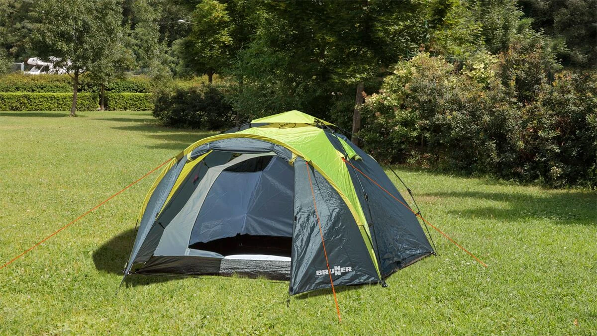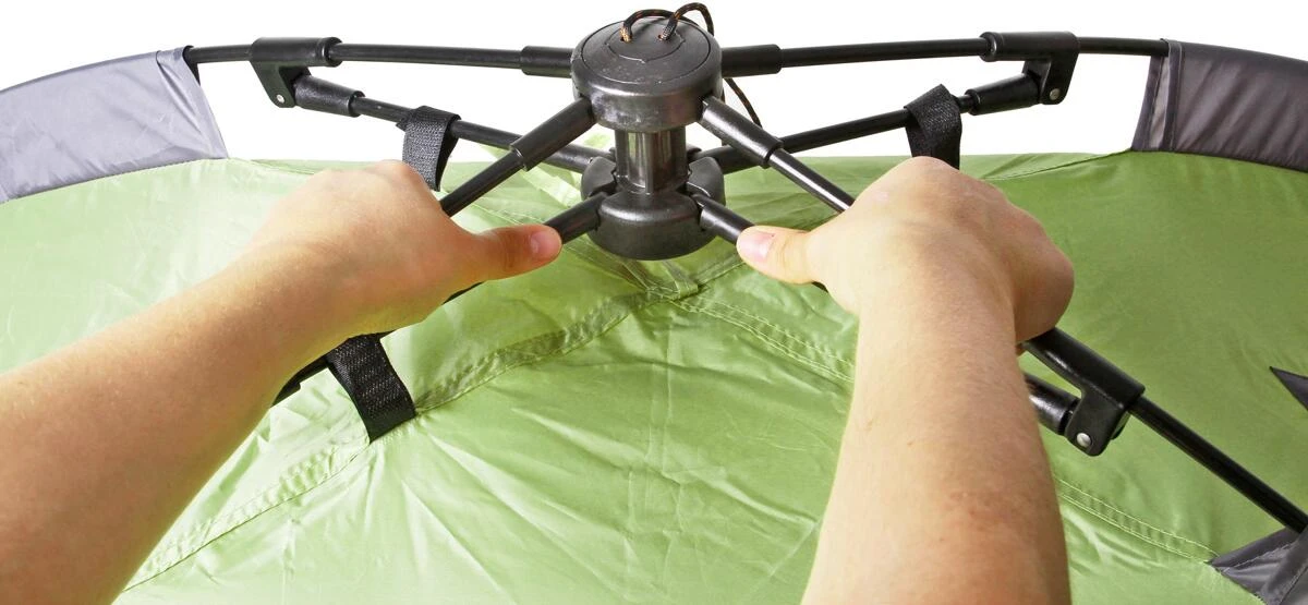 Automatik Kuppelzelt mit Doppeldach und praktischem Vorbau. Dank modernem Gestänge mit integrierter Seilzugtechnik sekundenschnell aufgebaut und einsatzbereit. Kompaktes Packmaß bei geringen Gewicht.