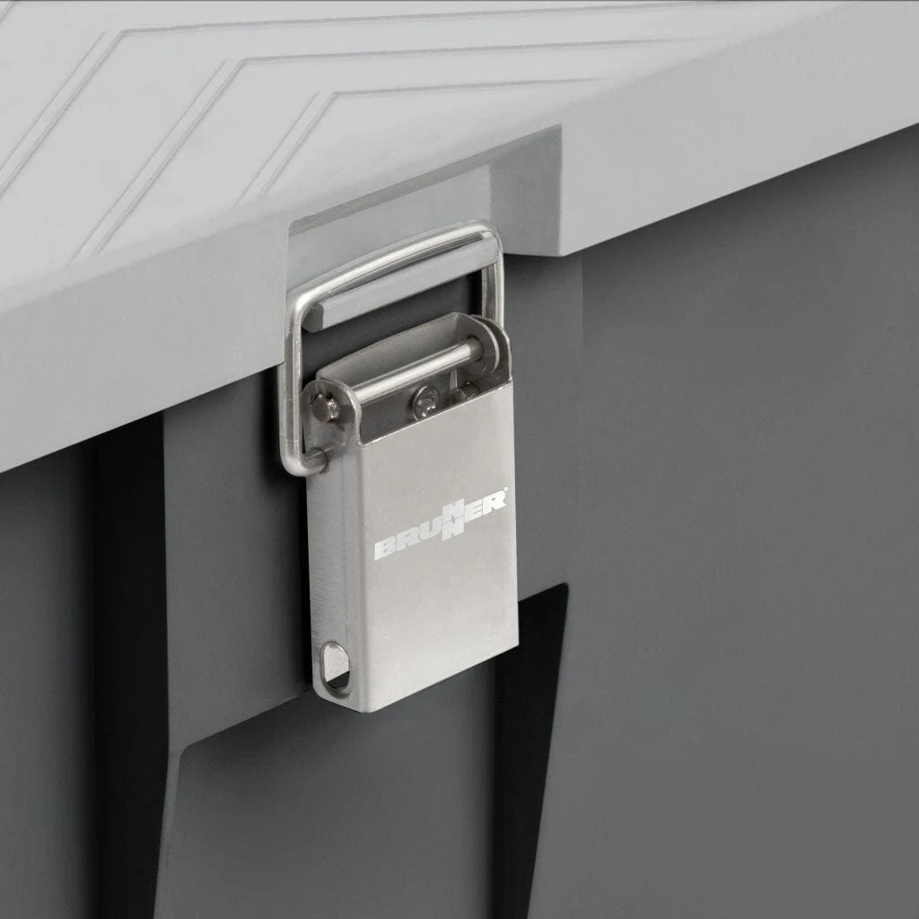 Trittstufe mit innenliegendem Stauraum für Schuhe, Zubehör, Werkzeug u. v. m. Der wasserdicht abschließbare Deckel ist mit einer rutschfesten Trittfläche ausgestattet und verfügt zudem über eine integrierte Sicherheits-Solarleuchte. Hochwertige, sehr stabile Kunststoffkonstruktion mit Drehfüßen zum Niveauausgleich.