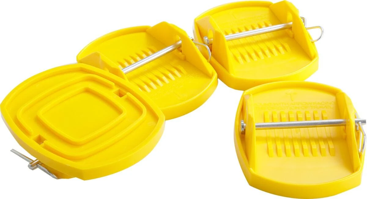 Stützplatten für Caravan mit Arretierstift aus Metall.