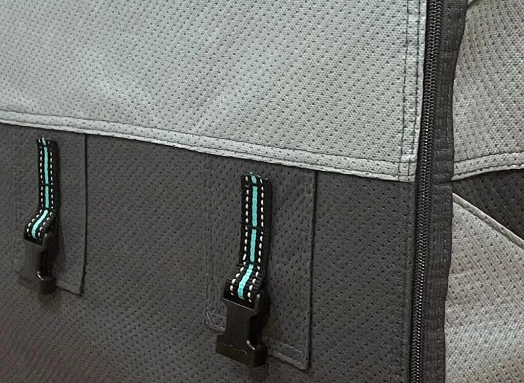 - ausgestattet mit hinteren Reißverschlüssen, die das Abdecken erheblich erleichtern und den Zugang zum hinteren Teil des Fahrzeugs im abgedeckten Zustand ermöglichen