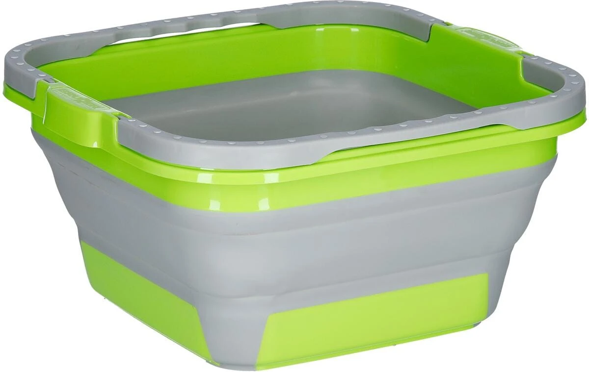 Der Cleo Falteimer ist vielseitig einsetzbar. Der Eimer hat zusammenklappbare Griffe und eignet sich perfekt zum Abwaschen Ihres Geschirrs oder Ihrer Kleidung. Darüber hinaus ist es hitzebeständig, bruch- und frostbeständig.