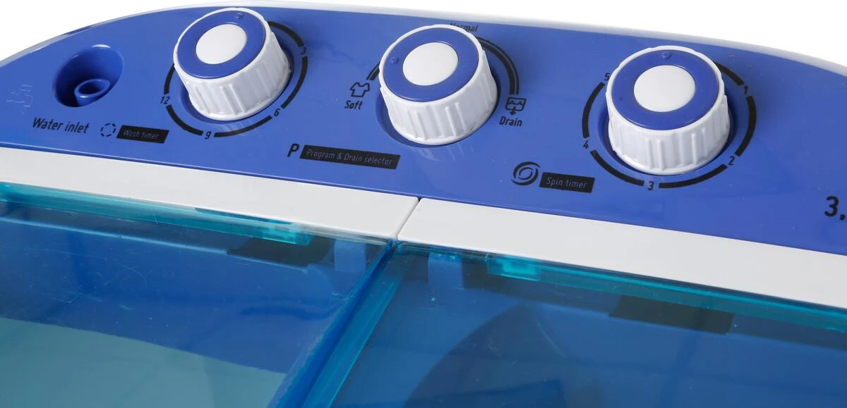 Diese tragbare Kompaktwaschmaschine mit Schleudertrockner (Zwillingswannen-System) eignet sich hervorragend zur Verwendung in kompakten Wohnsituationen, wie es bei Wohnmobilen, Wohnwägen oder Mobilhomes der Fall ist. Top-Lader. Wählen Sie einfach die gewünschte Funktion (waschen oder trocken) und das Gerät stoppt automatisch, sobald der entsprechende Vorgang beendet ist. Robustes Kunststoffgehäuse mit transparentem Deckel. Ladekapazität: 3,5 kg Waschvorgang (Trockenwäsche) und 1,5 kg im Trockner. Niedriger Energieverbrauch.