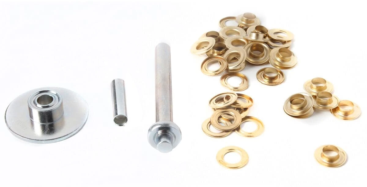Messingösen-Set mit komplettem Montagewerkzeug und zwanzig Ösen.