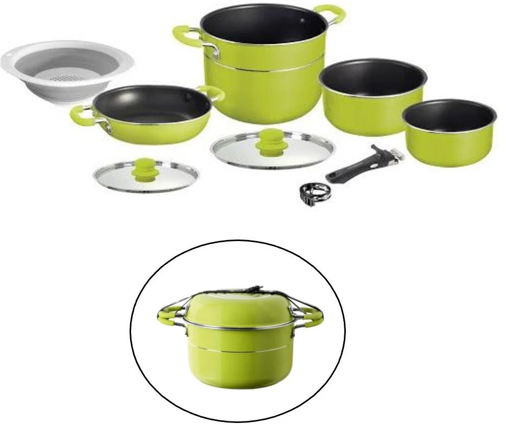 Alu-Topfset mit Edelstahldeckel und Soft-Touch Griffen. Mit Antihaft-Beschichtung.