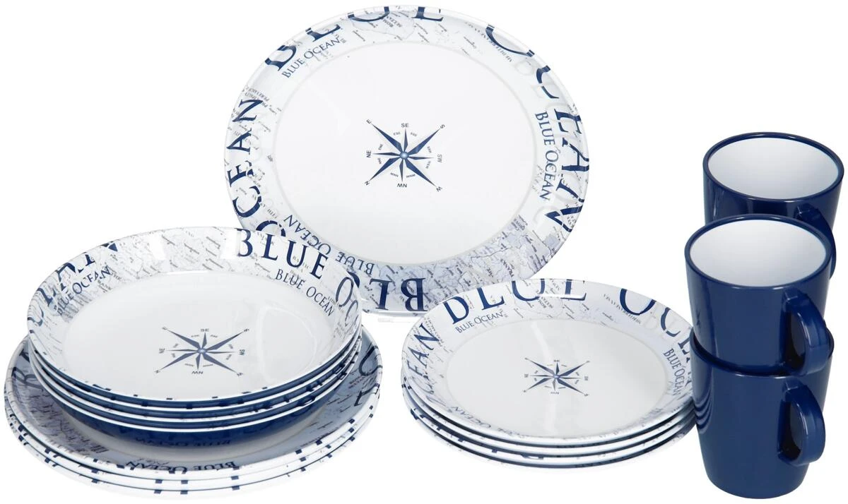 16-teiliges Geschirrset aus hochwertigem Melamin. Zeitlos schönes Design. Alle Teile mit Antislip System.
