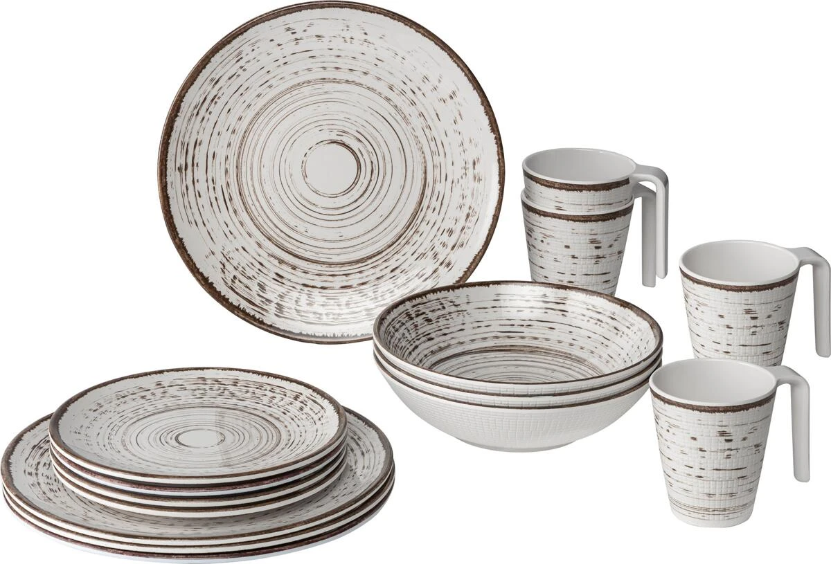 Das Geschirrset Lunch Box Kassandra ist 16-teilig und beinhaltet Essteller, kleine Teller, Schalen und Tassen für 4 Personen.