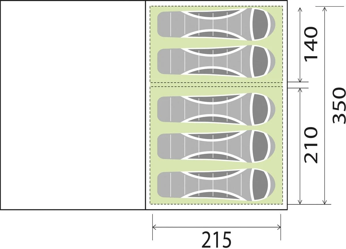 - Maße Schlafbereiche: 380 x 235 x 195 cm