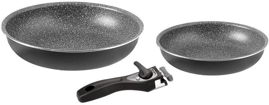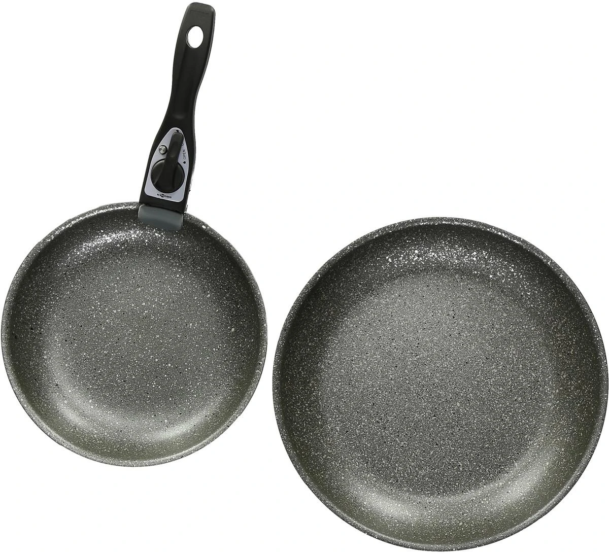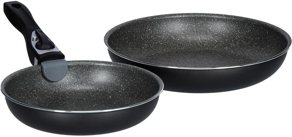 Pfannenset aus Aluminium mit Antihaft-Beschichtung und Griffzange, welche das Verstauen erleichtert. Die Antihaft-Beschichtung gewährt ein leichtes Kochen und Säubern. Das Set besteht aus 2 Pfannen mit ø 28 cm und ø 22 cm.