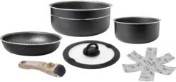 Topfset-Kollektion aus Aluminium mit hochwertiger Antihaft-Beschichtung. Kompakt verstaubar, modernes Design, hygienisch, zuverlässig, unempfindlich gegenüber Temperaturschocks und korrosionsfest. Das neue Vacublock-System sichert Ihre Töpfe und Pfannen während der Fahrt und ich die perfekte Lösung für Freizeitfahrzeuge und Boote.