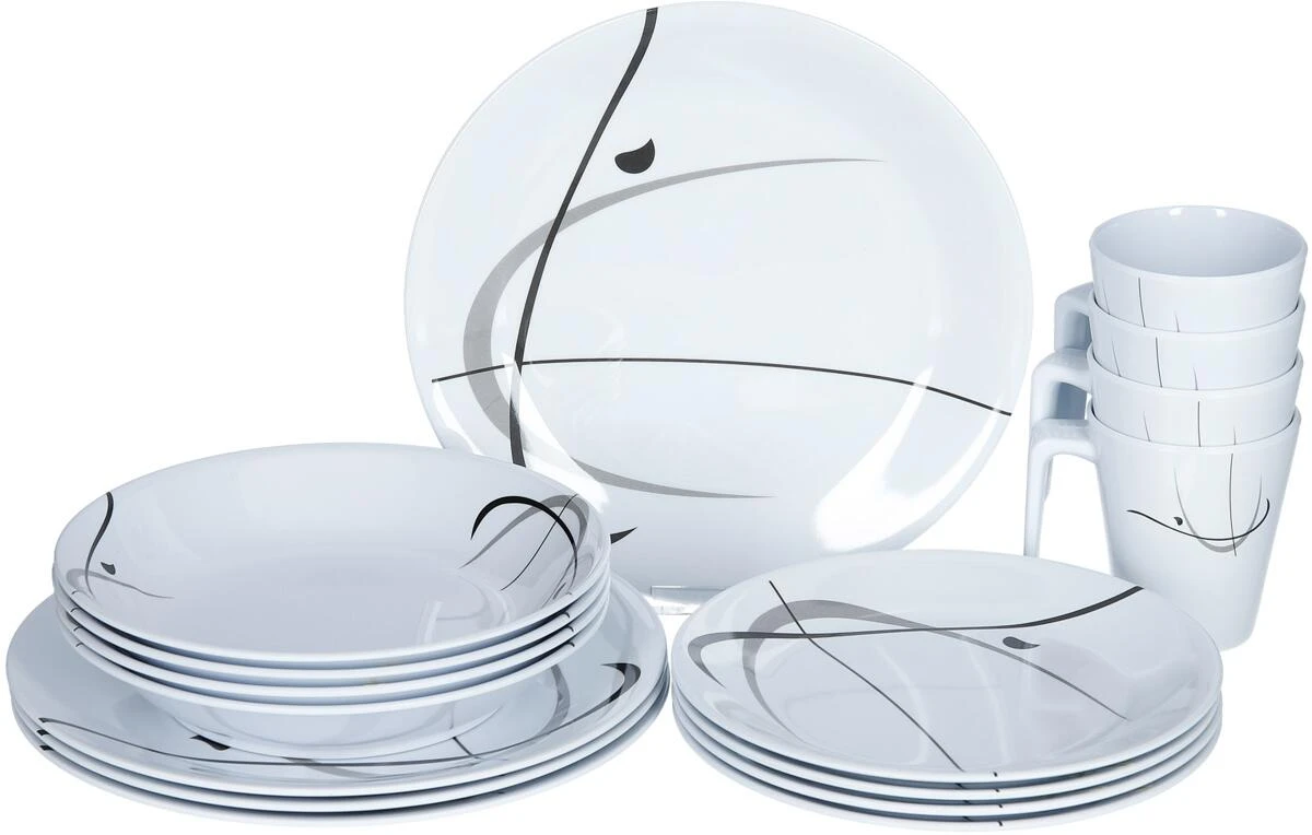 Brunner Lunch Box Kassandra Geschirrset, 16-teilig, Weiß-braun