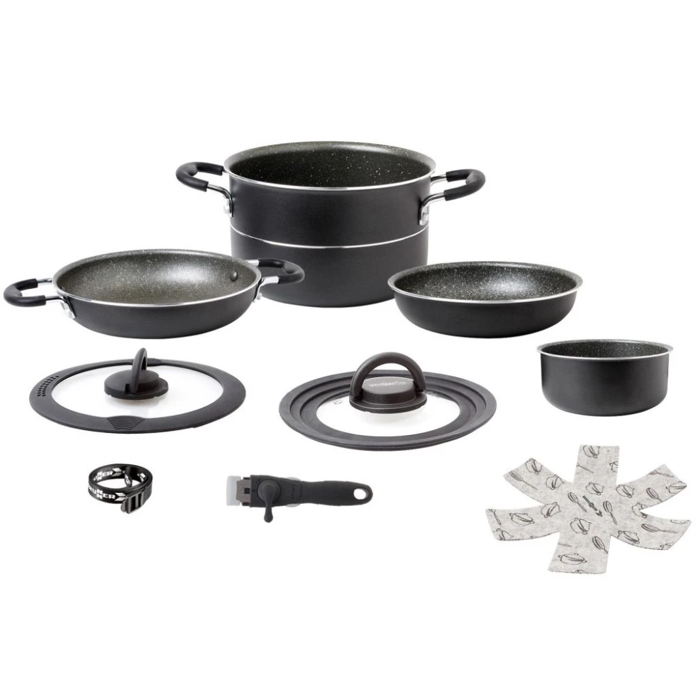- reduziert die Möglichkeit von Kratzern auf der Antihaftbeschichtung