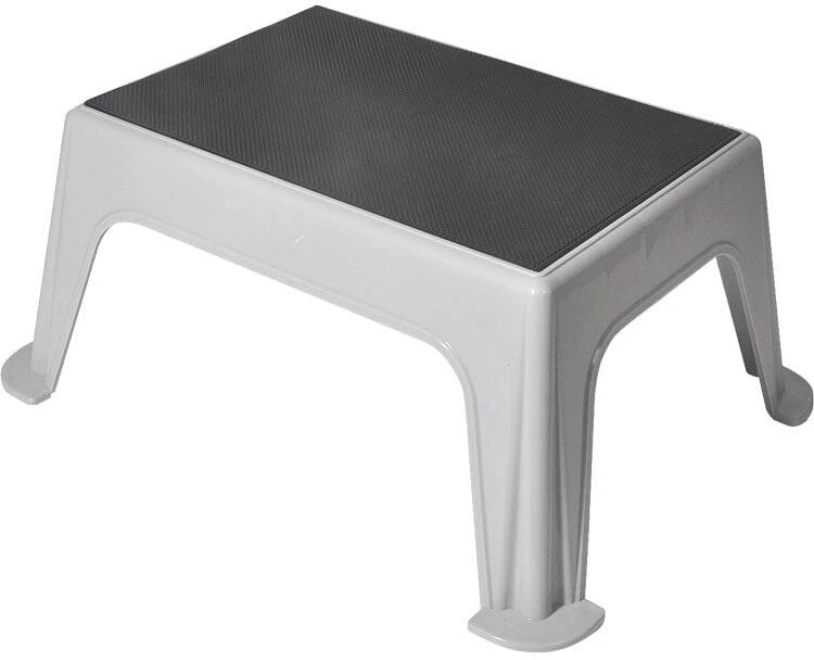 Kunststofftrittstufe für Freizeitfahrzeuge mit integrierter Antirutschmatte.