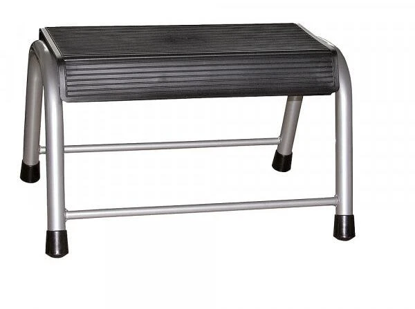 Trittstufe mit abnehmbarer Gummimatte, für leichte Reinigung. Stabile Ausführung aus verzinktem Metall.